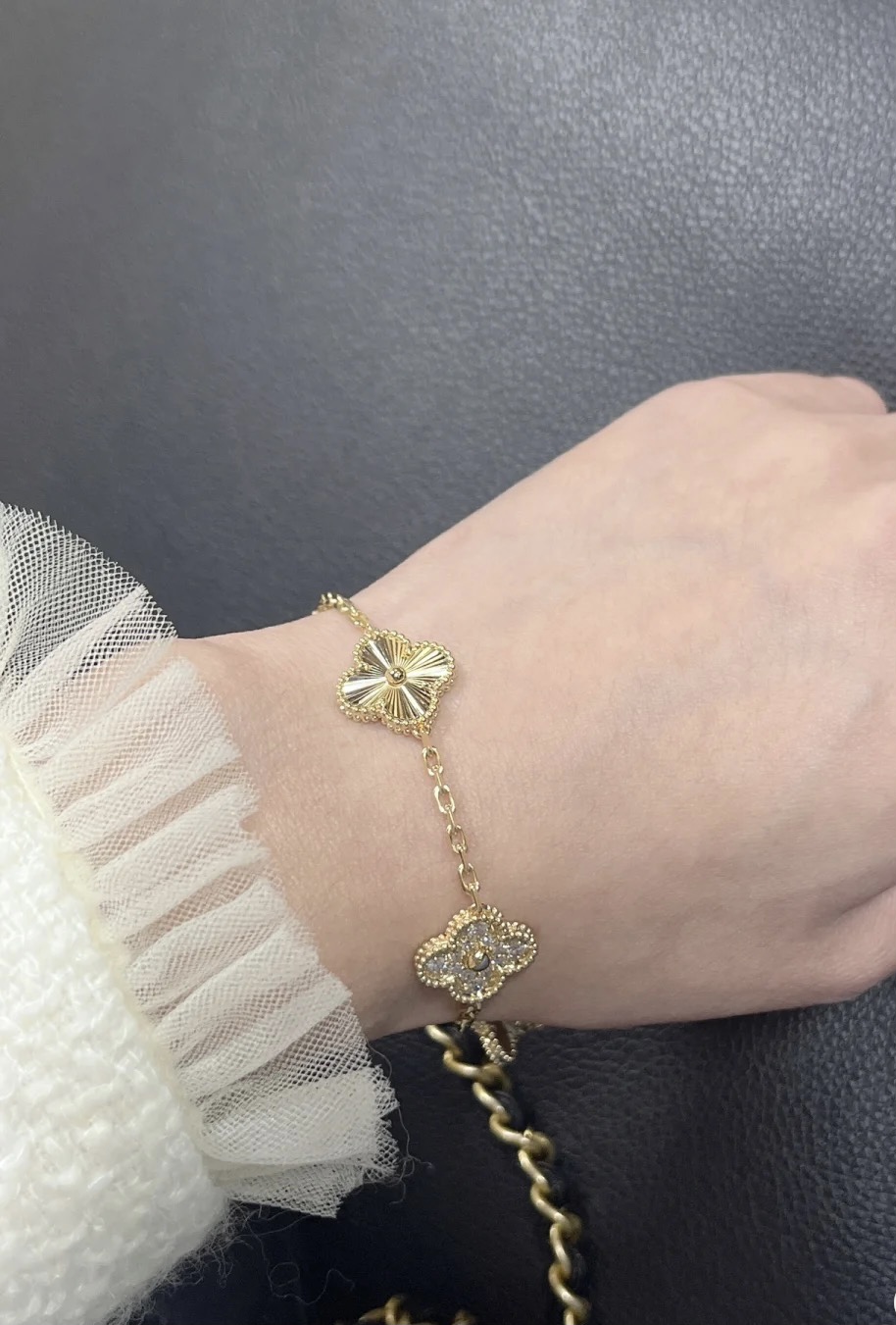 The four-leaf clover bracelet is so exquisite and the workmanship is good. Express delivery is very fast. It goes well with clothes!