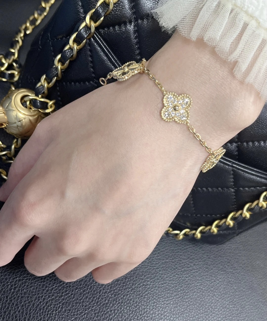 The design of the Van Cleef & Arpels bracelet is very classic, I especially like this little flower. Simple lines, especially soft
