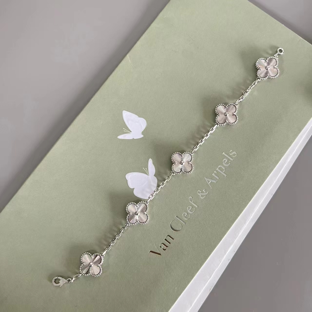The silver laser bracelet is too bright, very flashy. Very obvious. Van Cleef & Arpels understands us girls very well and matches clothes well. Beautifully packaged and fast delivery!