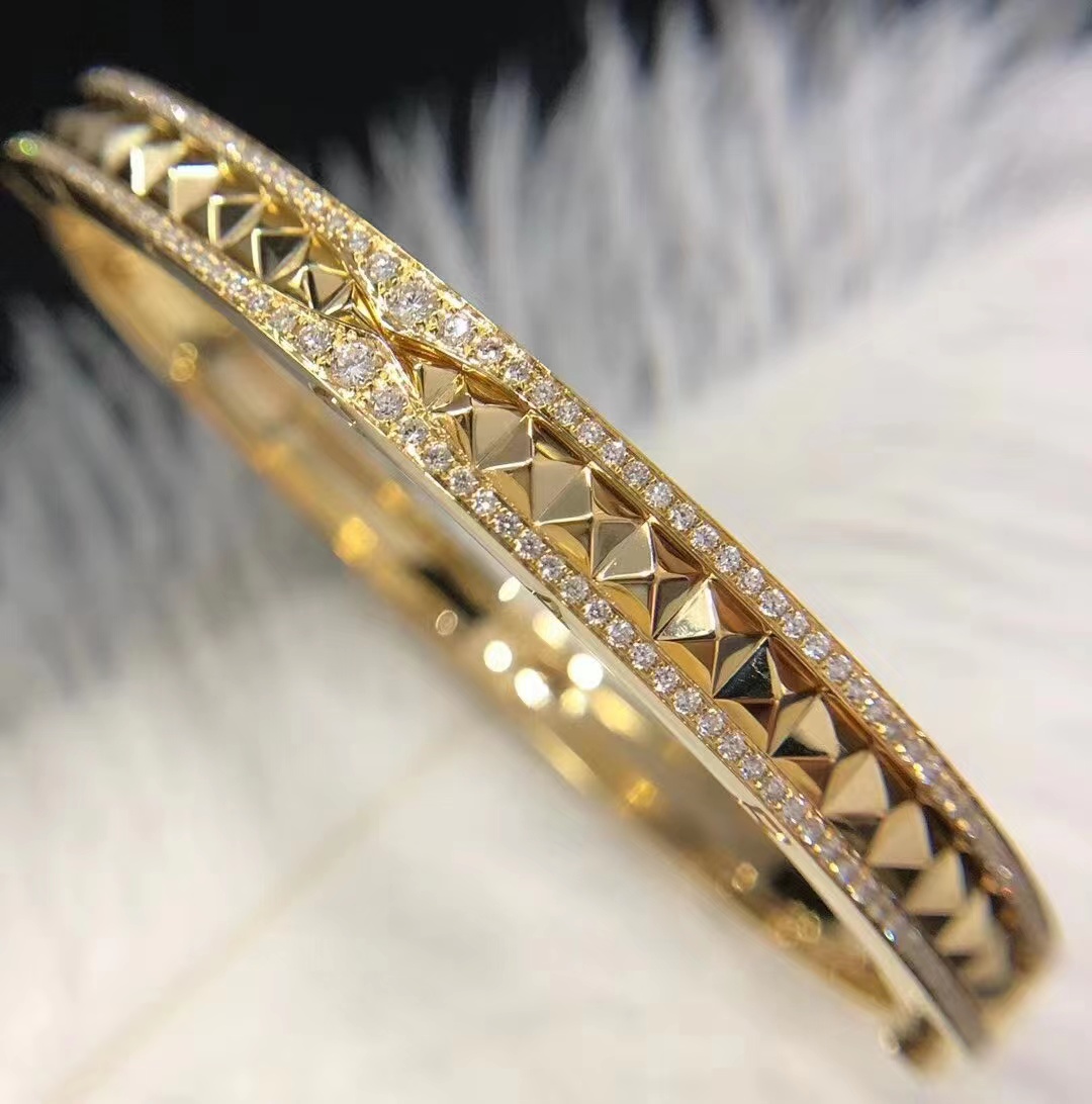 FORWARD-LOOKING SPIRIT OF BVLGARI'S CLASSIC DESIGN. B.ZERO1 ROCK BRACELET IN 18K YELLOW GOLD, DECORATED WITH PAVÉ DIAMONDS.